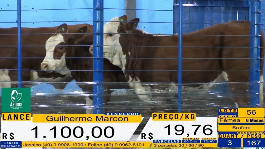 Segundo o presidente do Sindicato Rural de Palmitos, Luiz Antônio Cavalleri, os resultados de comercialização foram expressivos. Ele relata que a média de preços para machos foi de 14,54 e fêmeas de 13,53 reais. Já, alguns lotes de fêmeas para reposição de plantel foram comercializados por mais de 17 reais o quilo.
