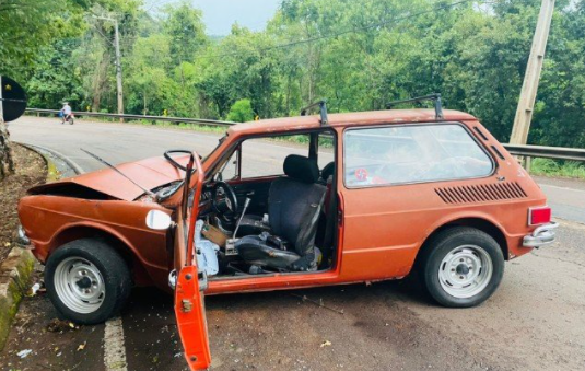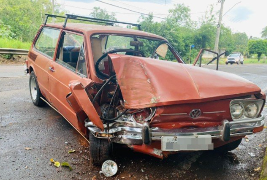 Conforme informações do Corpo de Bombeiros, o condutor de uma Volkswagen/Brasília, com placas de Santa Rosa, Rio Grande do Sul, foi resgatado com ferimentos nos braços. Às guarnições ele relatou que perdeu o controle da direção, saiu da pista e colidiu nas árvores que ficam às margens da rodovia.