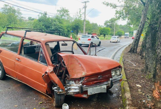 Brasília sai da pista e colide em árvores no Oeste de SC