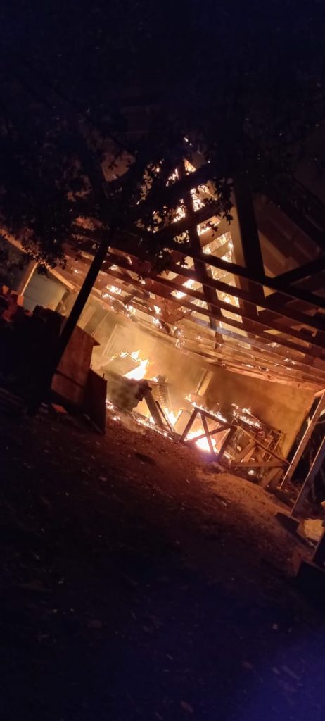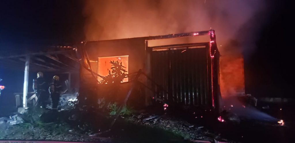 Uma residência foi atingida pelo fogo em Chapecó. O sinistro foi registrado neste domingo (06), por volta das 22h45min, na Linha Cachoeira, interior do município. Não houve feridos.