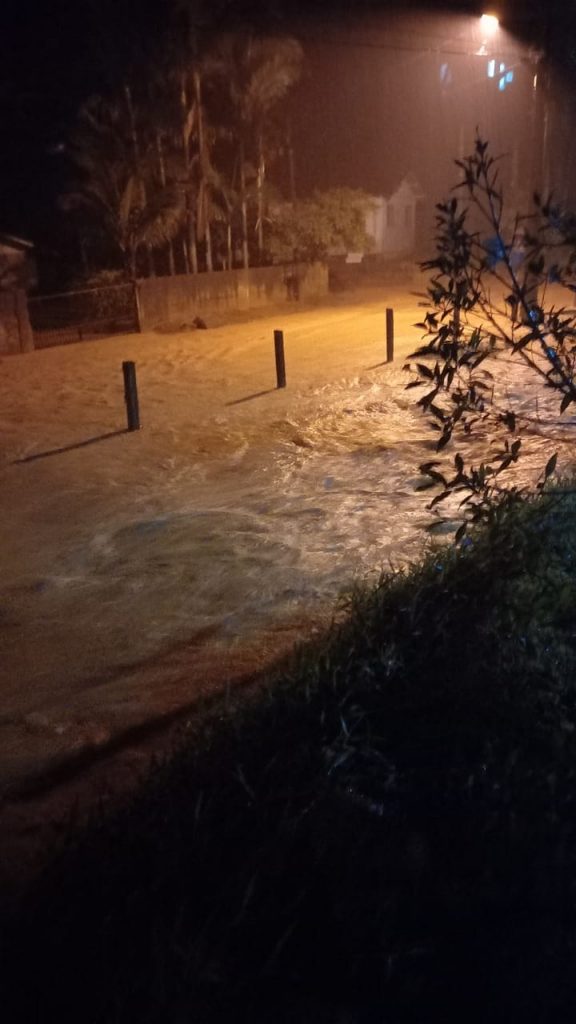 Já em Brusque, a Defesa Civil municipal atendeu sete ocorrências desde a madrugada. Quatro pedidos foram relacionados a alagamentos em ruas, dois deslizamentos de terra e uma queda de muro. Os bairros mais atingidos foram Limeira e 1º de Maio.