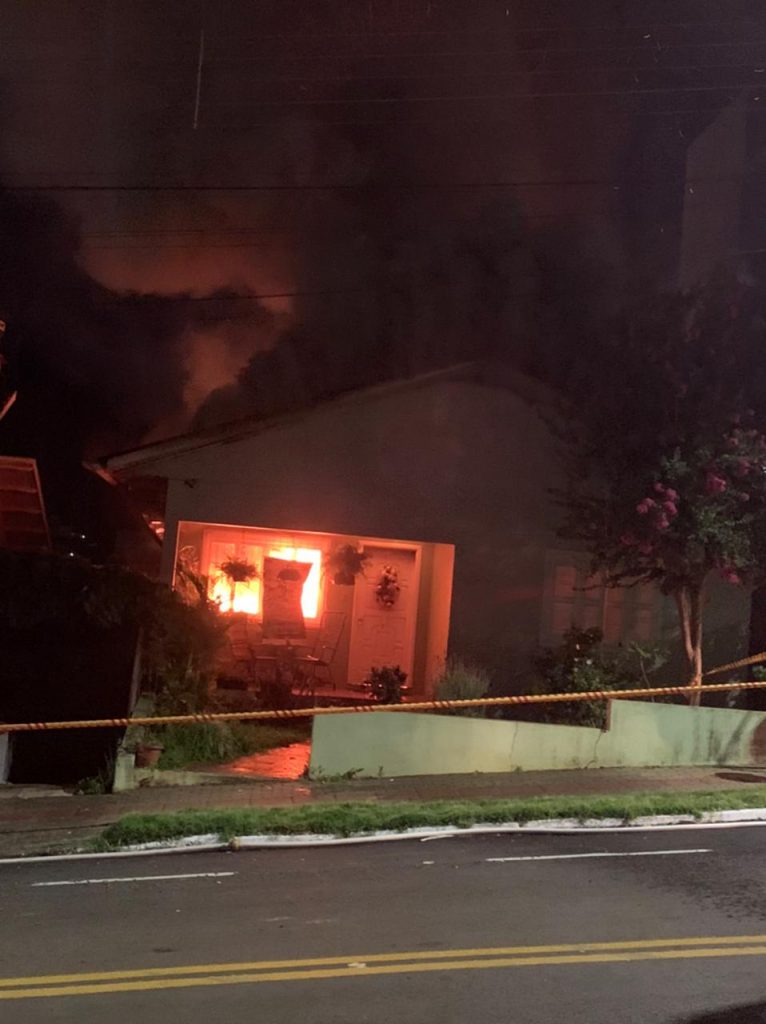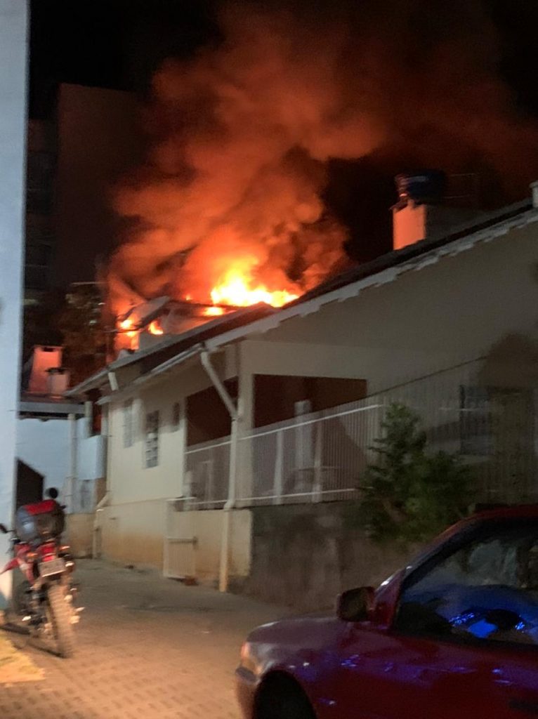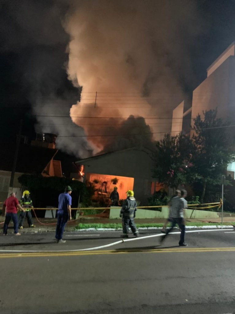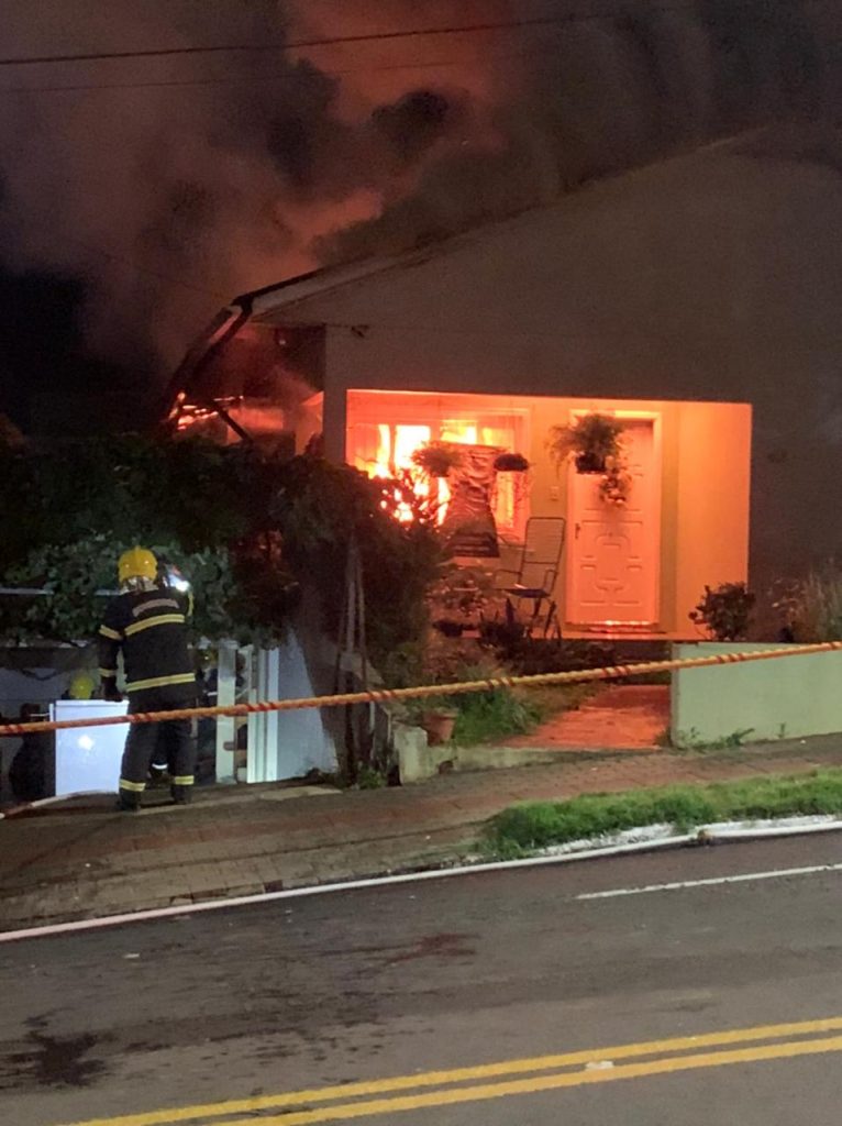 Um incêndio de grandes proporções destruiu por completo uma residência localizada no centro de Cunha Porã. O fogo teve início por volta das 22 horas, no exato momento em que uma multidão acompanhava um evento alemão na praça que fica próximo do local.