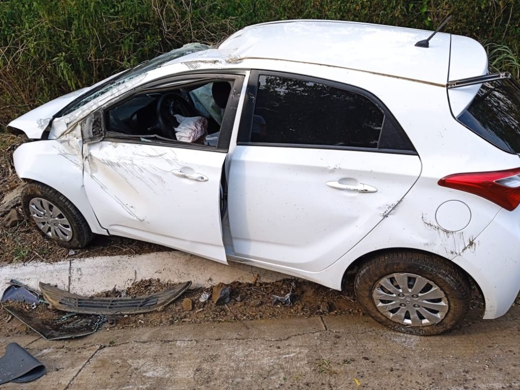 Jovem fica ferida após veículo sair da pista e capotar na BR-282