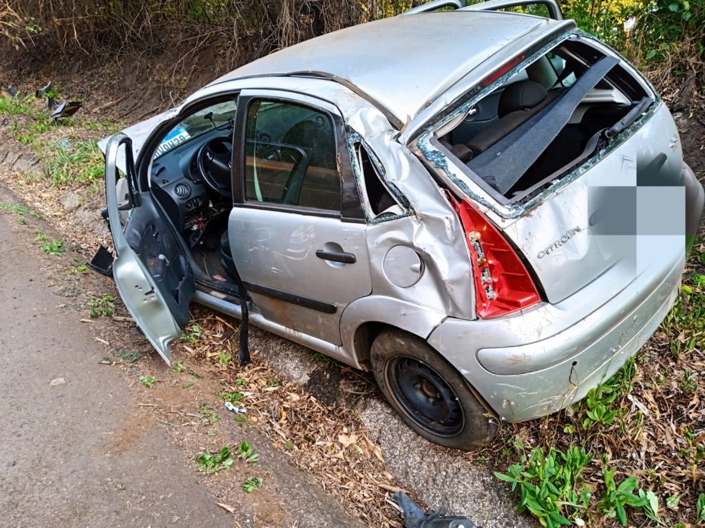 Mulher fica gravemente ferida após saída de pista seguida de capotamento na BR-282