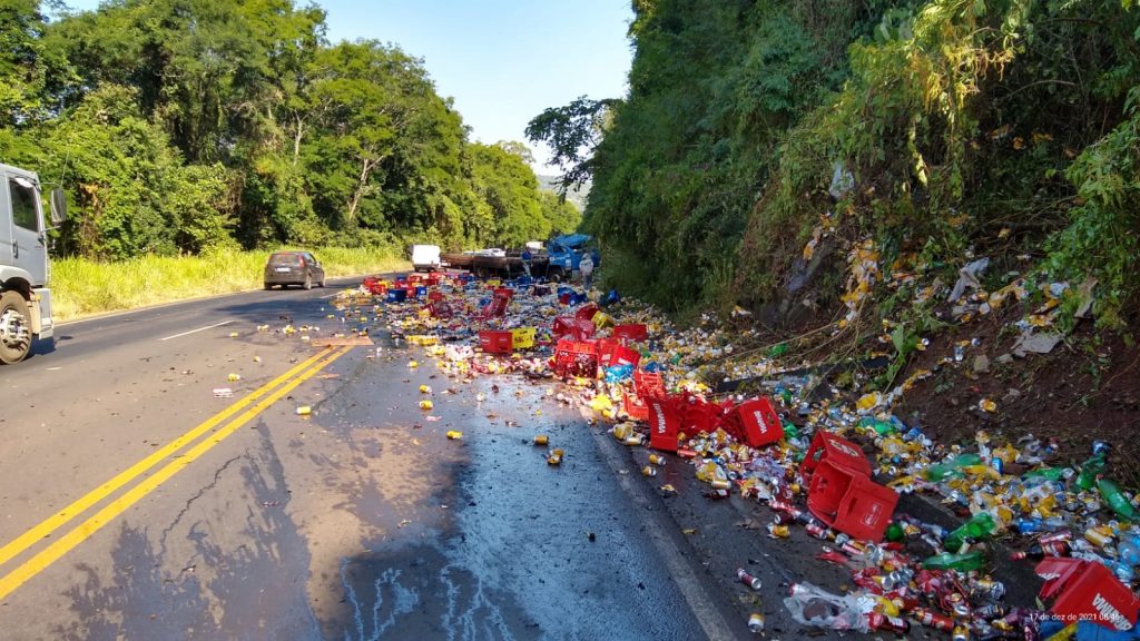 Um caminhão carregado de bebidas perdeu a carga na rodovia após sair da pista e colidir em um barranco, na SC-157, no município de Coronel Freitas, no Oeste de Santa Catarina. O acidente ocorreu na manhã desta sexta-feira (17), por volta das 9h30min.