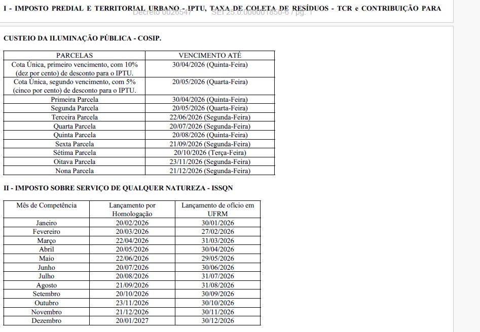 O município reforça que o objetivo da divulgação antecipada é facilitar o planejamento financeiro dos contribuintes e garantir mais organização ao longo do ano fiscal.