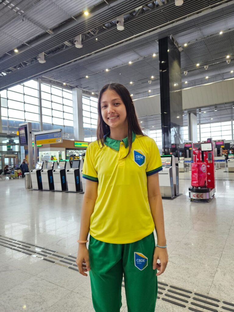 Emocionada, a atleta destacou a realização do sonho de defender o país. Ela agradeceu à família, aos professores, aos projetos municipais e à Escola Exponencial pelo apoio na trajetória esportiva.