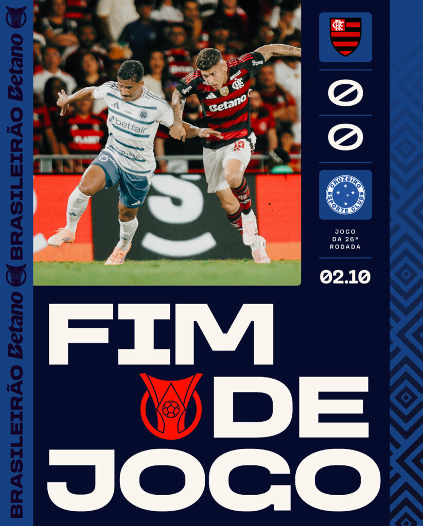 O @Flamengo empata com o @Cruzeiro pelo placar de 0x0, em partida válida pela 26ª rodada do Brasileirão! 🔥