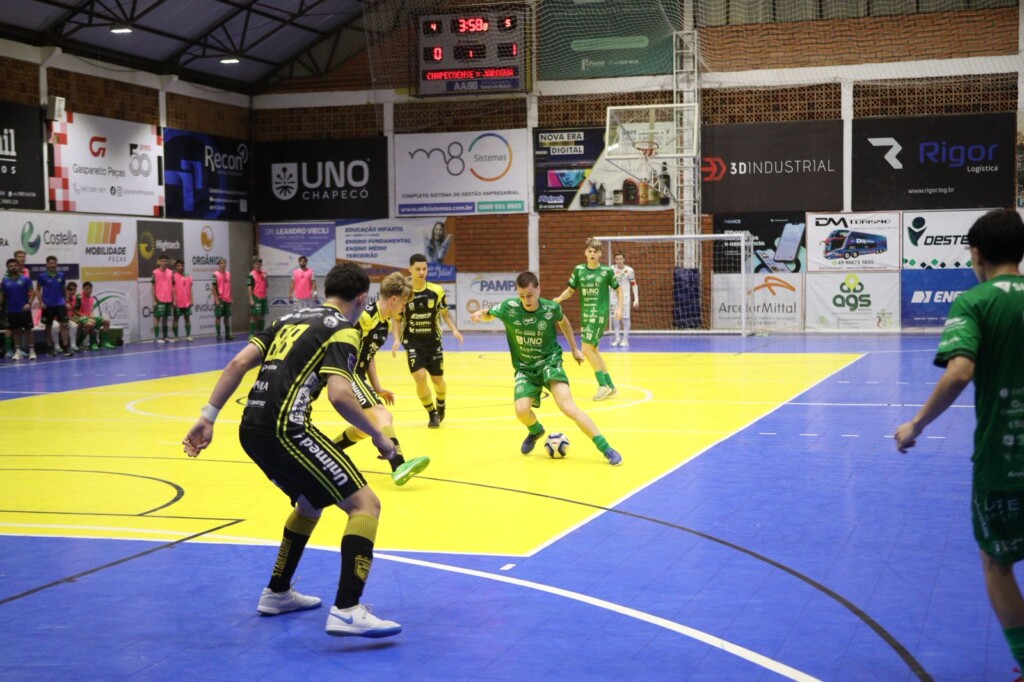 A temporada da Prefeitura de Chapecó/Chapecoense/Unochapecó chegou ao fim com o vice-campeonato do Estadual Sub-18 da Federação Catarinense de Futsal. O Verdão das Quadras acabou superado na final pelo Jaraguá. O segundo e decisivo jogo da competição ocorreu na noite desta terça-feira (22), no ginásio da AABB, em Chapecó. Após perder na ida por 5 a 2 em Jaraguá do Sul, a Chape Futsal precisava vencer no tempo normal para provocar a prorrogação, onde teria a vantagem do empate para faturar o título.