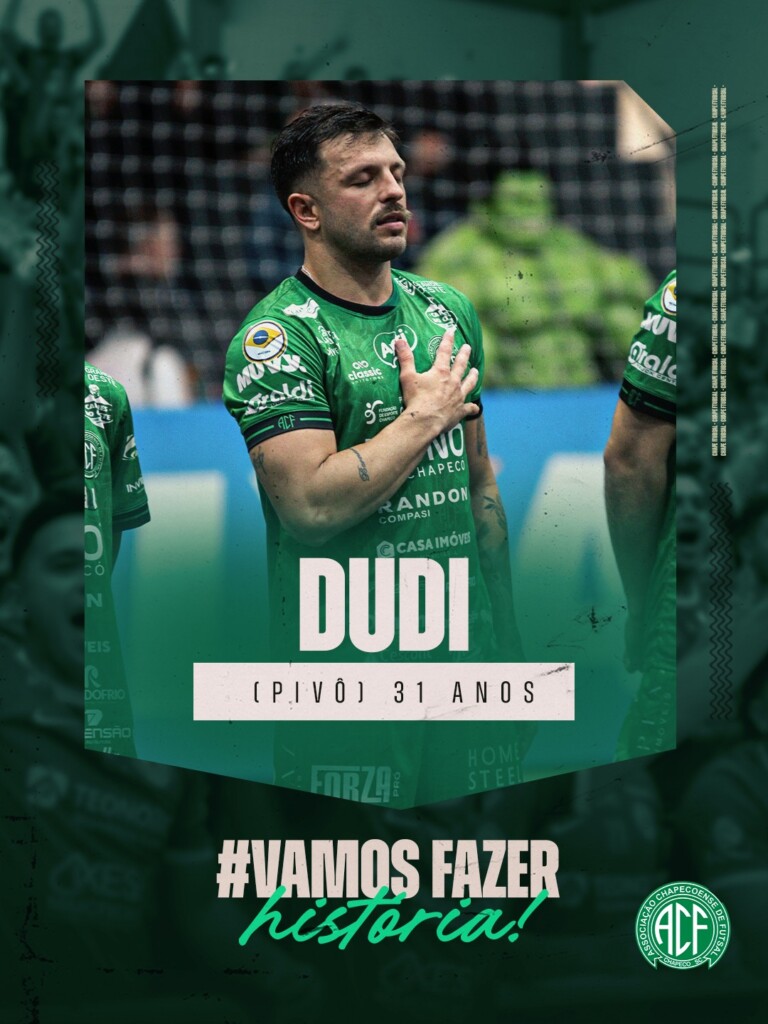 A Chape Futsal renovou o contrato de 13 atletas que atuaram pelo elenco adulto. Para o gol, estão confirmados Dudu, 20 anos, e Bolinha, 19. Para a função de fixo, continua João Camilo, 23. Para as alas, ficam o artilheiro do time na temporada, Kassula, 27 anos, Jefe Seco, 30, Ximba, 19, Maranhão, 23, Mano, 19, Davi, 18, e os gêmeos Eduardo e Lucas, 17. Para a posição de pivô, Dudi, 31, e João Seco, 21, estenderam o vínculo.