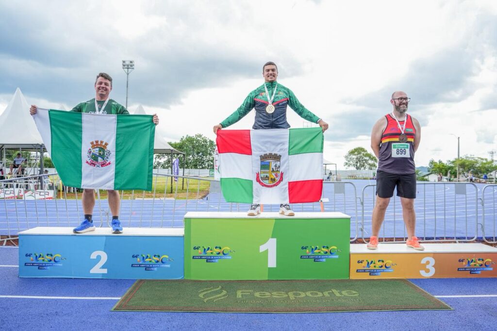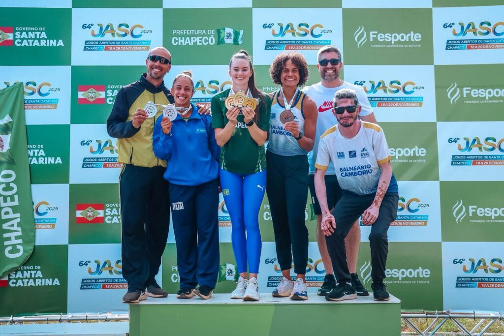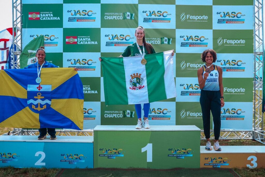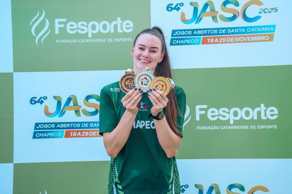 Chapecó teve um domingo de grandes resultados nos Jogos Abertos de Santa Catarina (JASC). No sexto dia de disputas, o município-sede garantiu três troféus de primeiro lugar, ampliou o número de medalhas e encerrou o dia empatado na liderança geral da competição com Itajaí, ambos com 113 pontos.