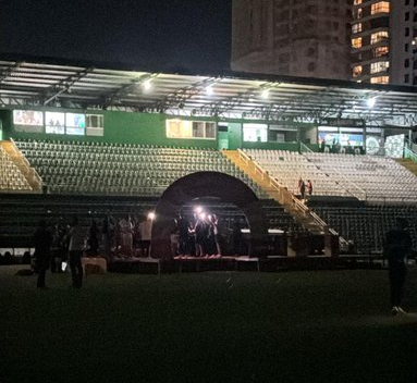Após a desocupação do campo, as luzes foram restabelecidas para a finalização da desmontagem das estruturas e limpeza do gramado.
