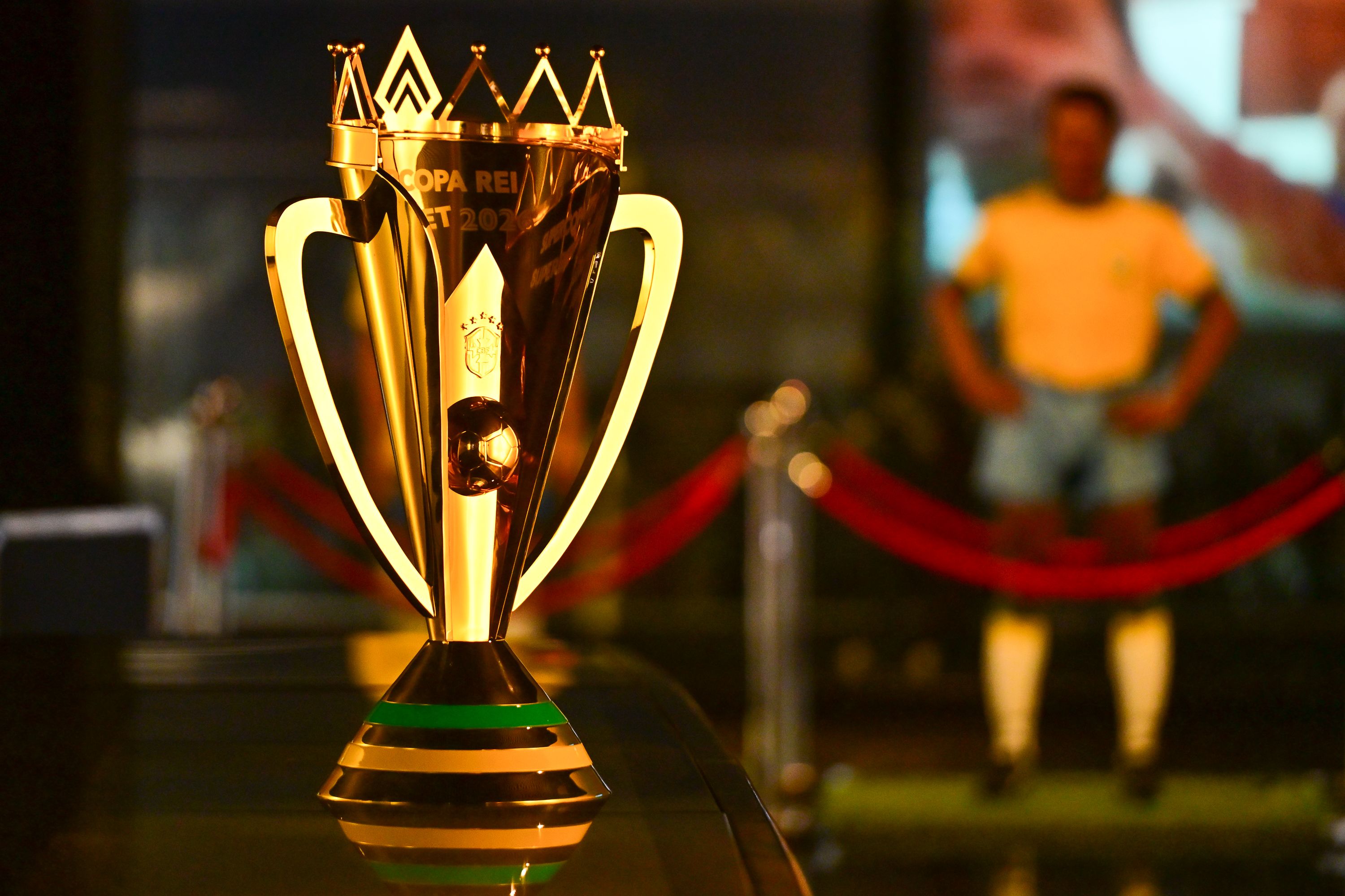 Troféu da Supercopa Rei Superbet 2026 tem uma coroa em seu topo em homenagem ao Rei PeléCréditos: Rafael Ribeiro / CBF