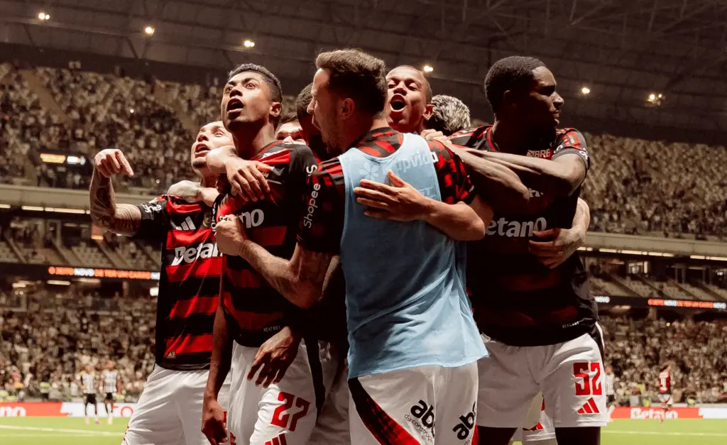 O Flamengo ficou mais próximo ainda de conquistar o Brasileirão da Série A de 2025 ao empatar com o Atlético-MG (1 a 1), na noite dessa terça-feira (25), na Arena MRV, em Belo Horizonte, e ver seu rival Palmeiras ser batido pelo Grêmio (3 a 2), na Arena Grêmio. Com isso, o Flamengo passou a somar 75 pontos, enquanto o Palmeiras, o vice-líder, estacionou nos 70.