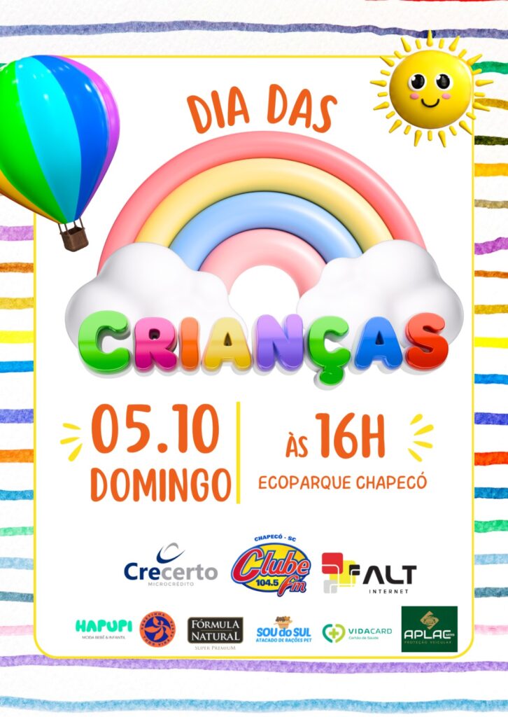 A equipe da Clube FM lembra ainda que o acesso ao Ecoparque está sendo realizado pela Rua John Kennedy. “Esperamos vocês para fazermos uma festa linda e celebrar junto com a criançada, afinal, ser criança é bom demais!”, reforça a equipe da emissora.