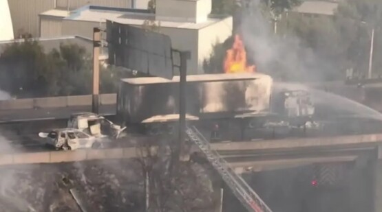 As imagens mostram a fumaça se espalhando do fundo da pista até encobrir completamente a rodovia. Segundos depois, ocorre a explosão, que atingiu diversos veículos que trafegavam pelo local.