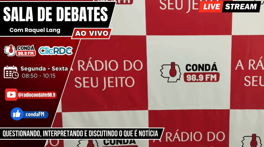 Acompanhe ao vivo o Sala de Debates desta terça-feira (30), com apresentação do jornalista André de Lazzari, que recebe o vereador Cleiton César e o Secretário de Serviços Urbanos, Nelson Krombauer.