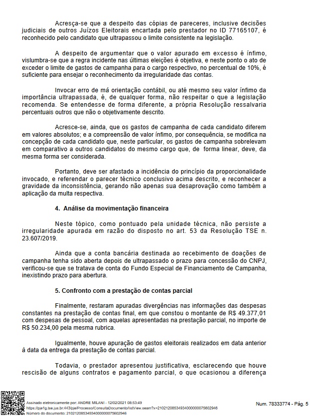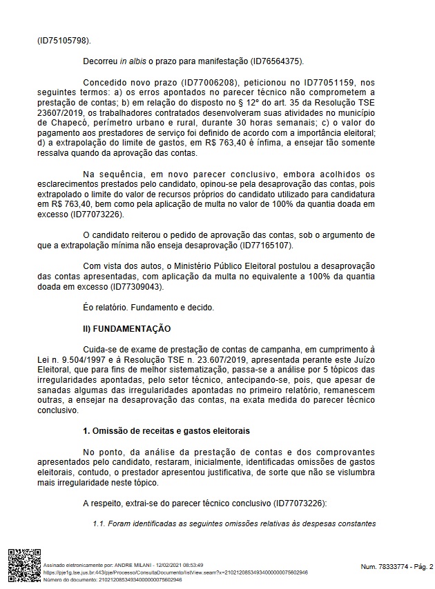Veja na íntegra a decisão do Juiz Eleitoral André Milani: