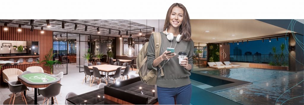O HB é dividido em 3 conceitos que vão complementar sua experiência de moradia urbana e deixar seu dia mais produtivo: