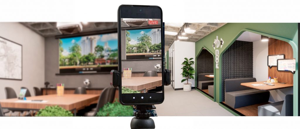 b. Live Studio: Sala de reuniões privativa com equipamentos que proporcionam a geração de lives pela internet ou gravação de vídeos.