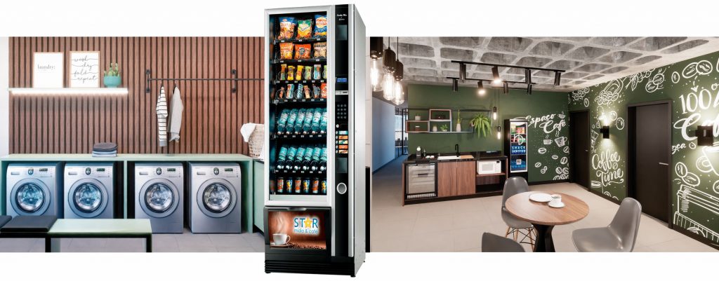 c. Vending Machine (Snack and beer): Máquinas conectadas ao seu smartphone com pagamento online e liberação imediata.