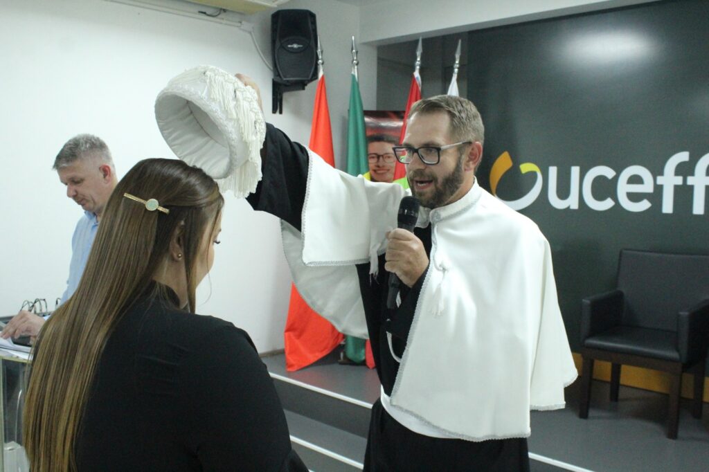 É uma grande alegria celebrar mais uma noite de formatura. Neste momento especial, parabenizo todos os estudantes aqui presentes por terem alcançado essa importante conquista, que é fruto do empenho, dedicação e responsabilidade que conduziram vocês em suas caminhadas formativas. De maneira muito especial, também agradeço a todo o corpo técnico da UCEFF pelo trabalho de excelência diariamente, aos coordenadores pelo direcionamento aos alunos, e aos professores por não medirem esforços para buscar informações, atualizar conteúdos e mediar conhecimentos importantes para a formação técnica, profissional e humana dos então formados. A UCEFF estará sempre de portas abertas para cada um de vocês.”, disse o professor Kurlan Frey em seu discurso de encerramento.