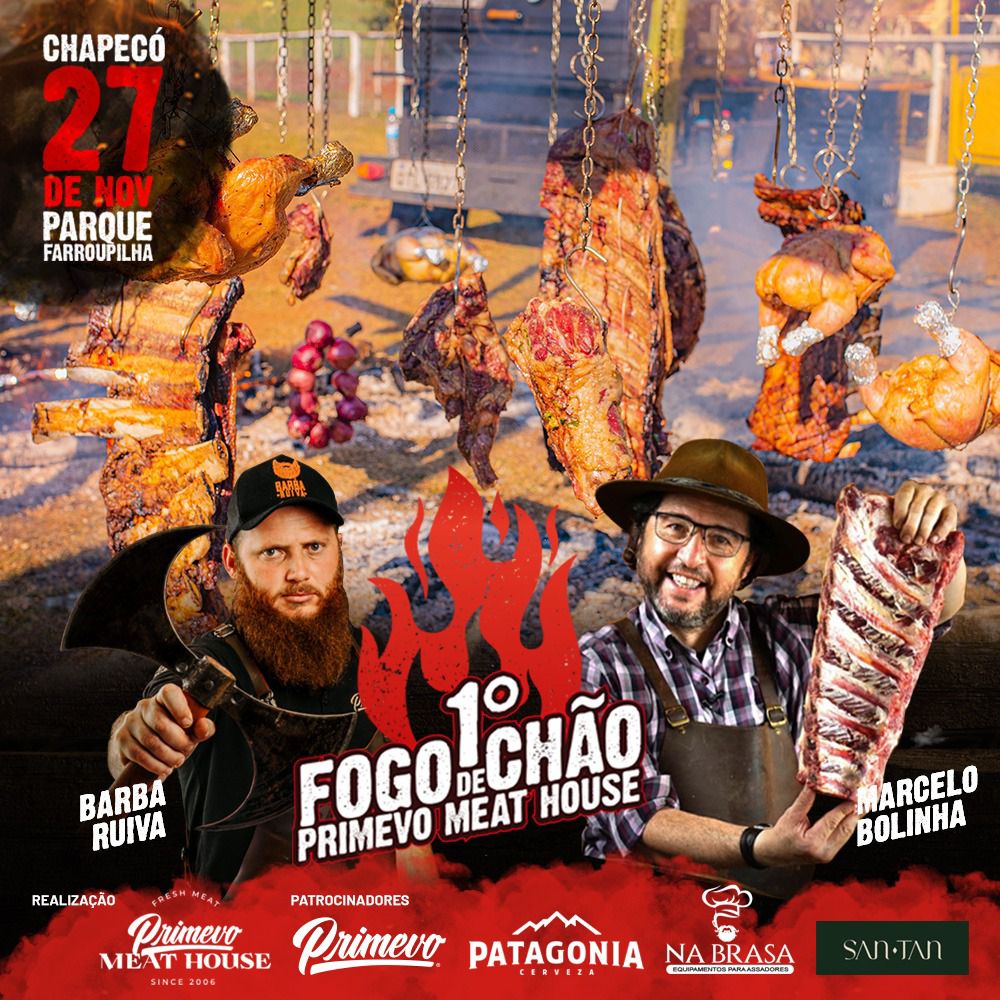 Com cardápio recheado de carnes nobres e cinco horas de “Rango Livre”, você viverá uma experiência incrível no 1° Fogo de Chão da Primevo Meat House. O evento que será realizado, no próximo sábado, dia 27, a partir das 11h, no Parque Farroupilha, contará com a presença dos Mestres do Churrasco.