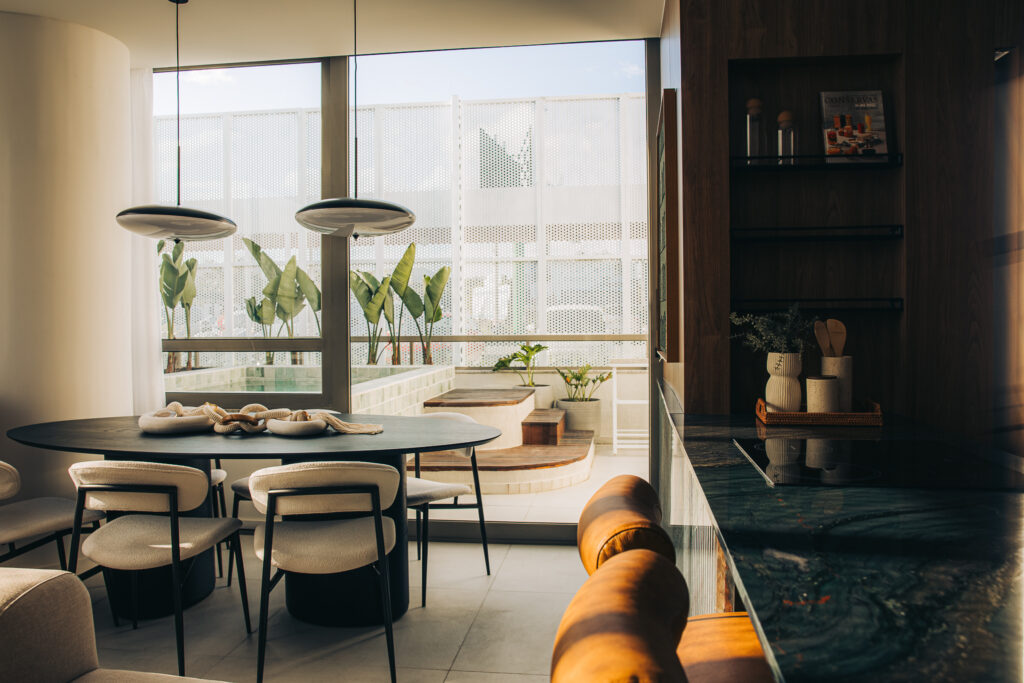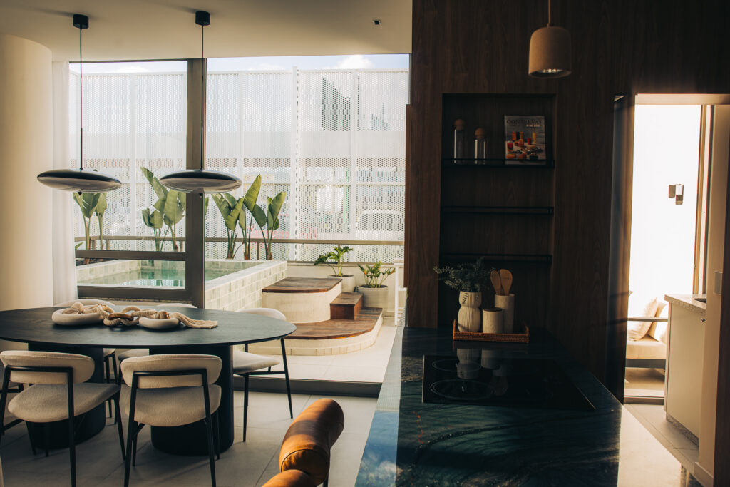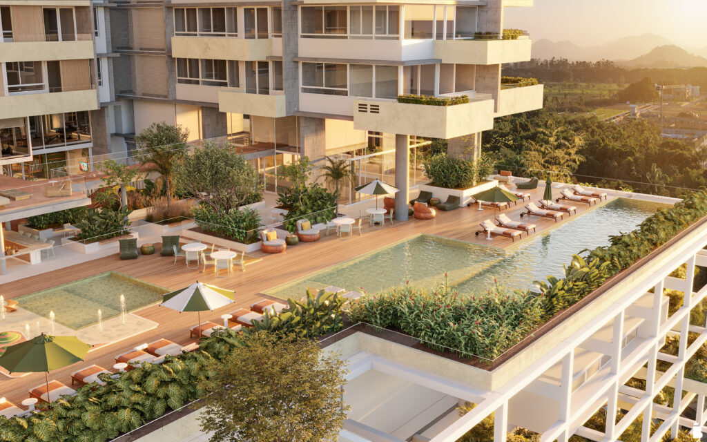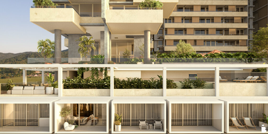 Assinado pelos escritórios FGMF, de São Paulo e VOO Arquitetura, de Santa Catarina, o Vitta 27 está localizado na área de centralidade do Vivapark Porto Belo – o primeiro bairro parque do Brasil – e articula diferentes usos em um único conjunto urbano. A fachada de forte identidade é marcada por lajes em balanço, brises deslizantes e vegetação integrada, compondo volumes que sugerem movimento, leveza e profundidade. O empreendimento reúne apartamentos de 1, 2 ou 3 suítes, estúdios e unidades com sacadas ou amplos terraços, com ou sem piscina, além de área de lazer completa, escritórios e lojas.