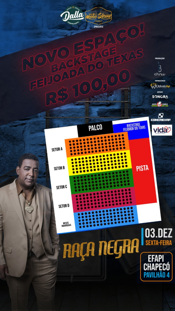 Faltam apenas dois dias para o show do  Raça Negra, um dos maiores grupos de samba e pagode do Brasil. Com músicas que marcaram a vida de muitas pessoas, e que até hoje contagia a todos, você vai entrar no ritmo e cantar “Didididiê Didididiê ê ê”, por todos os cantos. Pensando no seu bem estar, um novo espaço foi lançado, “Backstage Feijoada do Texas”, por apenas R$ 100,00.