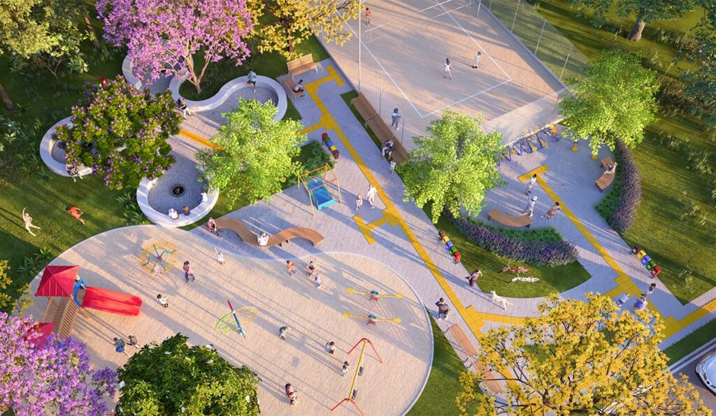 O empreendimento também contará com playground, quadra esportiva e espaços de convívio, além de 16 mil m² de área de preservação permanente e mais de 32 mil m² de área verde. A previsão de conclusão é para fevereiro de 2028, com liberação para construção a partir de agosto do mesmo ano.