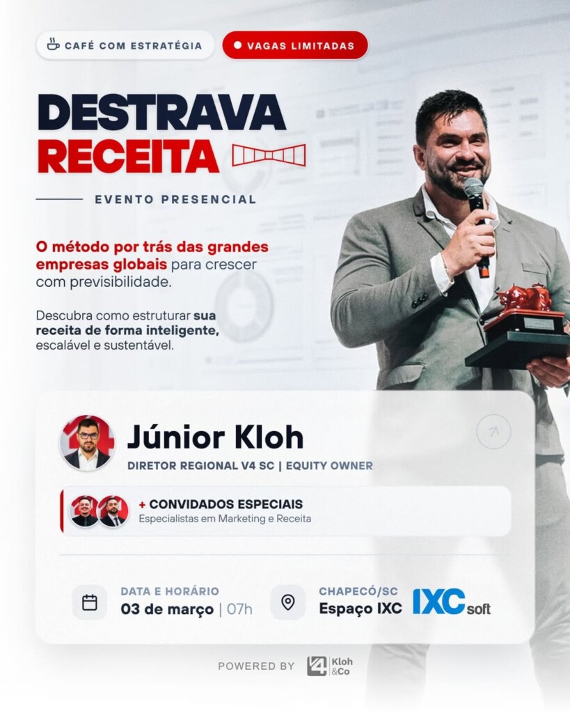 O evento “Destrava Receita – Café com Estratégia” foi idealizado justamente para apresentar essas ferramentas de forma prática e acessível a empresários que desejam crescimento previsível e sustentável. A proposta é oferecer direcionamento claro para quem sente que trabalha muito, mas não vê o resultado acompanhar o esforço.