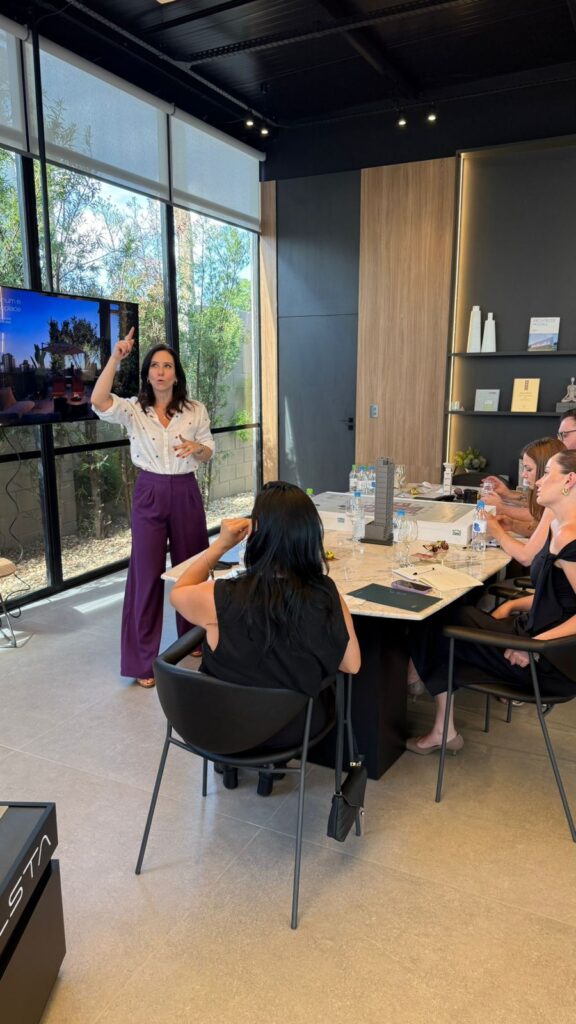 Logo na abertura do evento, os participantes foram recepcionados com uma apresentação institucional, destacando a proposta da imersão e a importância do Vista dentro do portfólio de alto padrão. Ao longo da tarde, o treinamento abordou temas como desenvolvimento profissional, autoconfiança nas vendas e relacionamento com o cliente, reforçando a importância da preparação estratégica para atuar em um mercado cada vez mais exigente.