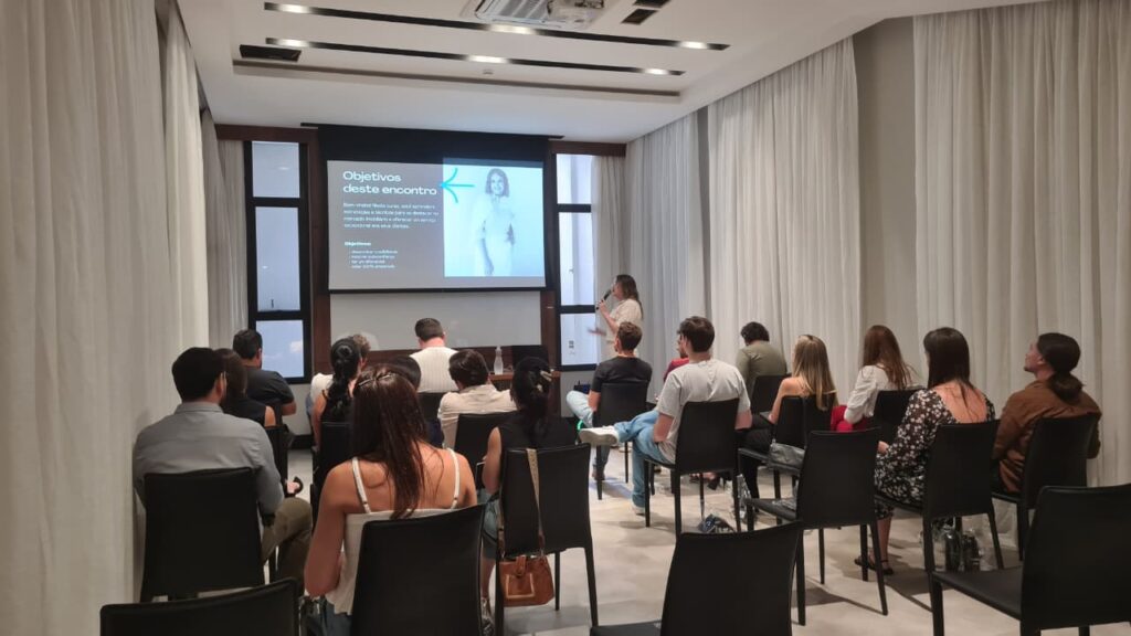 O primeiro dia de treinamento foi com a arquiteta Pamela Nonnemacher, que falou sobre a excelência na apresentação de imóveis. O objetivo da palestra foi guiar os corretores a serem persuasivos e compreendidos na hora de apresentar a um potencial cliente um imóvel de alto padrão, com abordagem comercial adequada.
