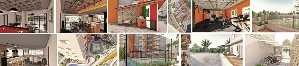 - Quadra poliesportiva para atividades ao ar livre, atenção à saúde com academia e crossfit, sala de jogos para diversão de todas idades, linda e enorme piscina com 2 cascatas artificiais e aquecimento solar, 3 quiosques temáticos para fazer aqueles pratos típicos, pet place para os bichinhos de estimação, chimarródromo com água quente 24h por dia, pomar, horta, bicicletas compartilhadas e uma grande área verde bem ao lado do empreendimento.