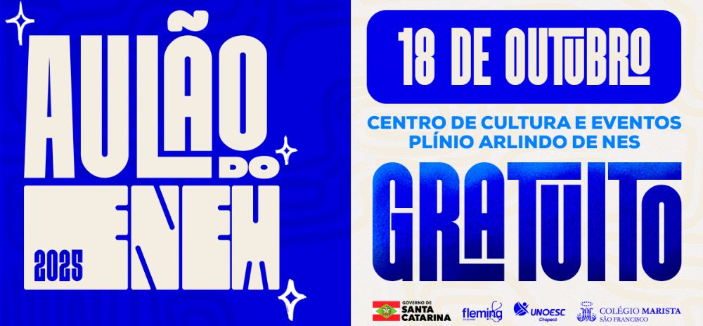 Chapecó se prepara para receber um dos maiores eventos de preparação para o Exame Nacional do Ensino Médio (Enem) na região Oeste de Santa Catarina. O “Aulão do Enem 2025” será realizado no dia 18 de outubro, a partir das 13h, no Centro de Cultura e Eventos Plínio Arlindo de Nes, com o objetivo de reunir estudantes que buscam reforço estratégico na reta final antes da prova.
