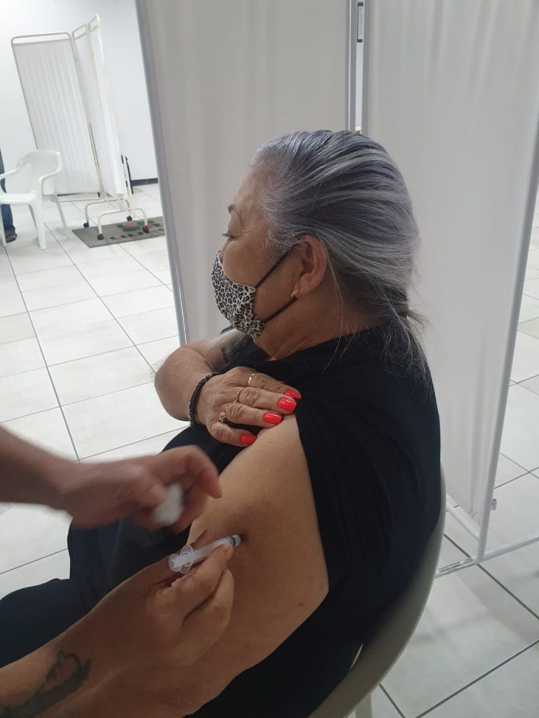 Todos com agendamento no site da Prefeitura. Nesta quinta-feira (01) estão sendo vacinados 43 anos ou mais, no Centro de Eventos.