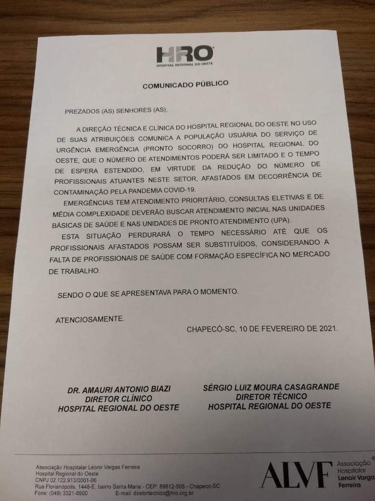 Ainda de acordo com o comunicado, a situação permanecerá pelo tempo necessário para que os profissionais que estão afastados possam se recuperar ou ser substituídos para o atendimento voltar à normalidade.
