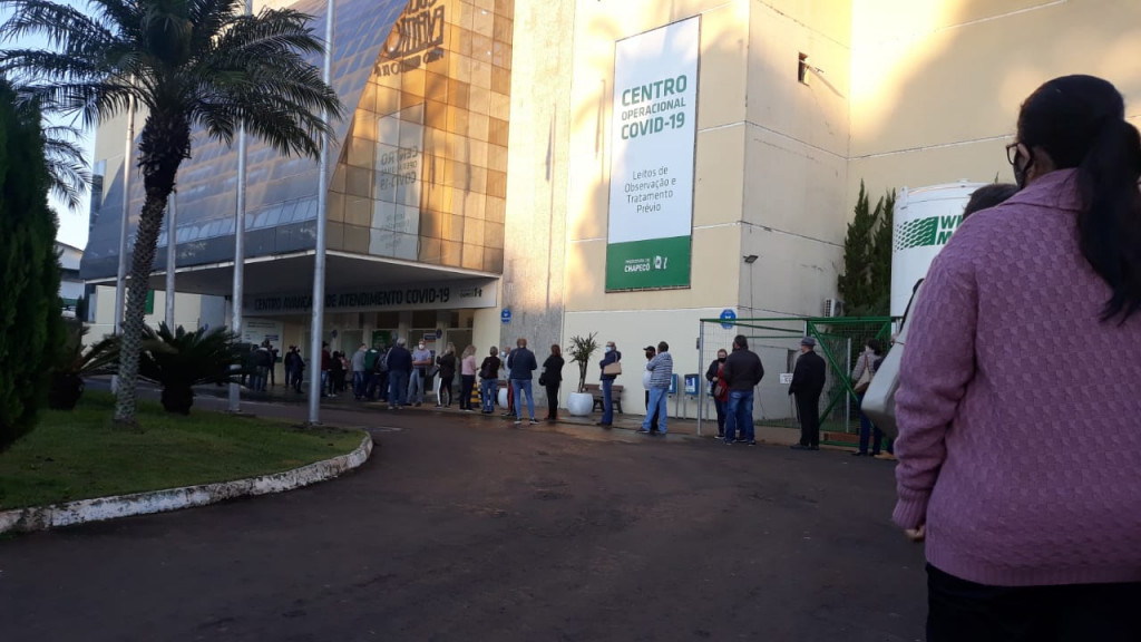 A manhã desta sexta-feira (4) foi mais um dia de vacinação contra a Covid-19 em Chapecó (SC). E filas foram registradas em dois espaços onde os imunizantes foram aplicados – no Centro de Eventos, onde foi instalado o Centro Estratégico de Vacinação, e no Sest/Senat.