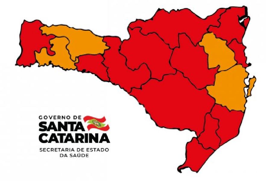 A Matriz de Risco Potencial divulgada nesta quarta-feira (30), pelo Governo de Santa Catarina e Secretaria de Estado da Saúde (SES) classifica 12 das 16 regiões de saúde do estado como em alerta gravíssimo (cor vermelha) para o novo coronavírus. As regiões de Xanxerê, Oeste, Médio Vale do Itajaí e Grande Florianópolis obtiveram avanços e foram reclassificadas para o nível Grave, cor laranja. Na semana passada todas as regiões estavam em nível gravíssimo, ou seja, em alerta máximo para a Covid-19.