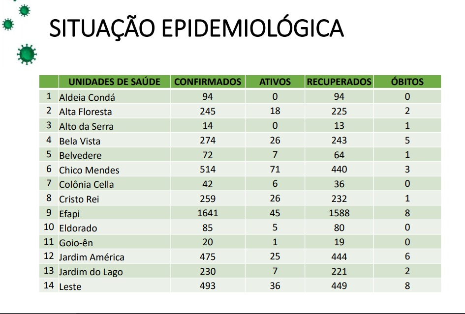 Além do Santa Maria, as Unidade de Saúde do Saic – que teve 606 pacientes diagnosticados com a doença – e Chico Mendes – que contabiliza 514 diagnósticos positivos – apresentam o segundo maior número de casos ativos, com 71 cada.