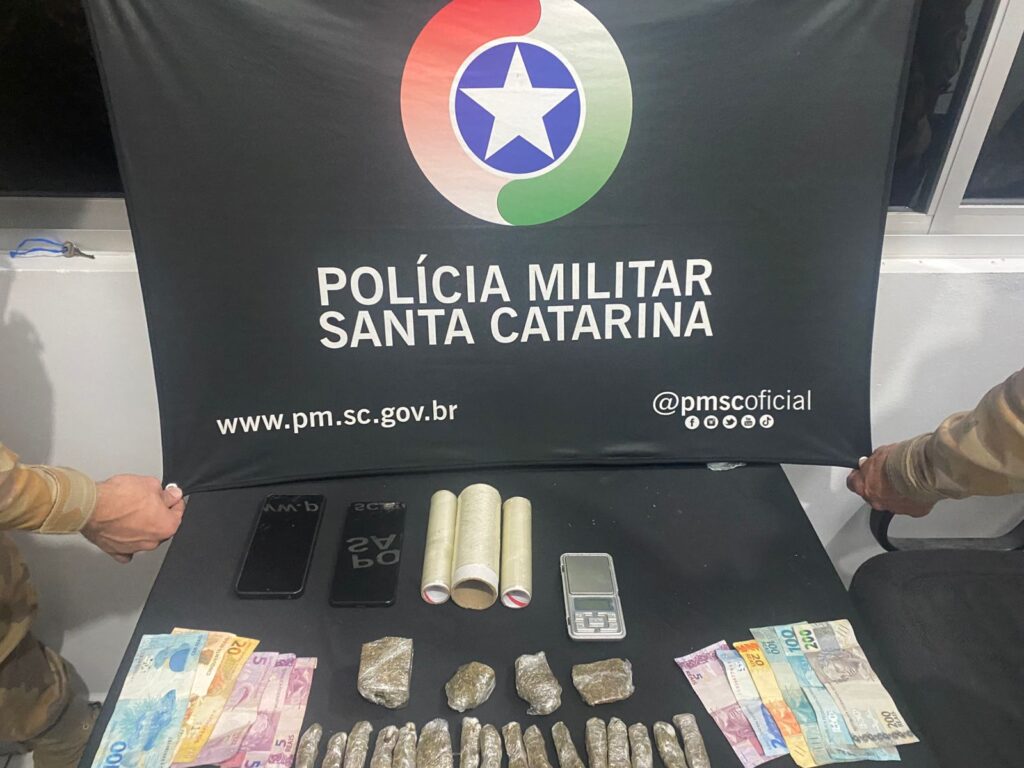 Com base na situação presenciada e nas informações colhidas no local, a guarnição deslocou-se até a residência do homem. Com o apoio do cão farejador Ayla, os policiais localizaram 20 porções de maconha, totalizando 242 gramas, todas embaladas e prontas para comercialização. Também foram apreendidos três rolos de plástico filme, uma balança de precisão e mais R$ 180,00 em espécie.