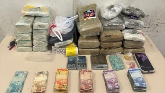 As buscas no interior do imóvel resultaram na apreensão de aproximadamente 10,4 quilos de crack, 900 gramas de cocaína, 12,3 quilos de maconha e 300 comprimidos de ecstasy, pesando 172,4 gramas. Também foram recolhidos dois carros, dois celulares, três balanças de precisão, R$ 3.300 em dinheiro e diversos materiais usados para fracionamento e comércio dos entorpecentes.