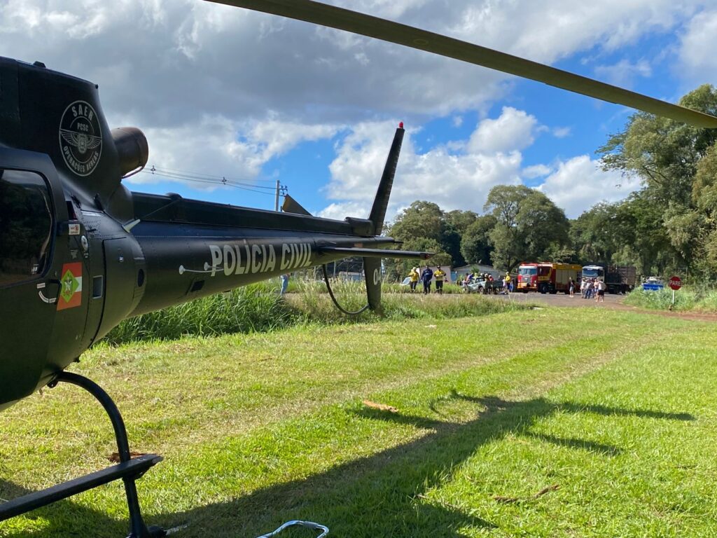 Acidente com três veículos mobiliza aeronave da Polícia Civil em Chapecó