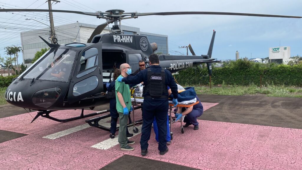 Segundo o SAER-Fron, a paciente apresentava suspeita de sangramento abdominal, lesão em membro superior direito, diminuição do murmúrio vesicular no tórax esquerdo e rebaixamento do nível de consciência. Durante o transporte, a vítima recebeu medicação e suporte ventilatório.