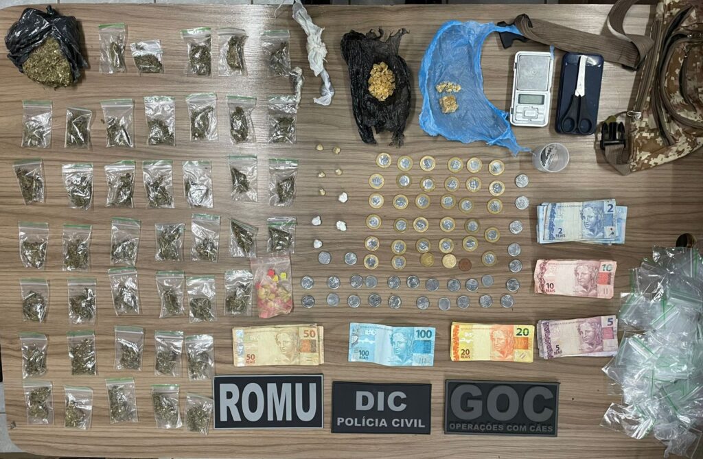 Além das drogas, foram apreendidos tesoura, duas lâminas utilizadas para fracionamento, embalagens, balança de precisão e dinheiro em espécie.