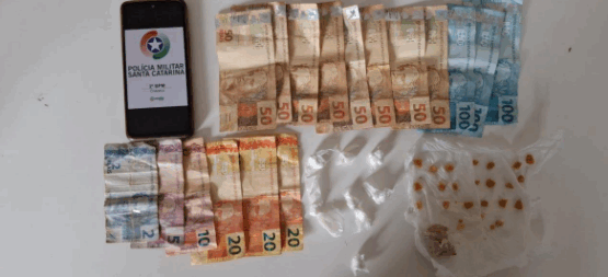 Durante a busca pessoal, os militares localizaram 23 pedras de crack, uma porção maior da mesma substância ainda não fracionada, sete buchas de cocaína e a quantia de R$ 777,00 em dinheiro.