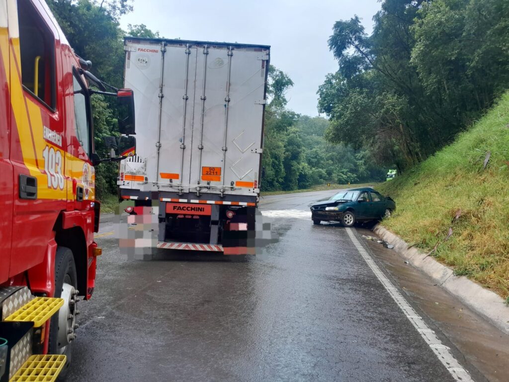 De acordo com o Corpo de Bombeiros Militar, o automóvel saiu da pista, colidiu contra um barranco e, na sequência, atingiu a carreta que trafegava pela rodovia. No veículo estavam três ocupantes. O condutor, de 20 anos, foi atendido no local e encaminhado pelo SAMU a uma unidade hospitalar para avaliação médica.