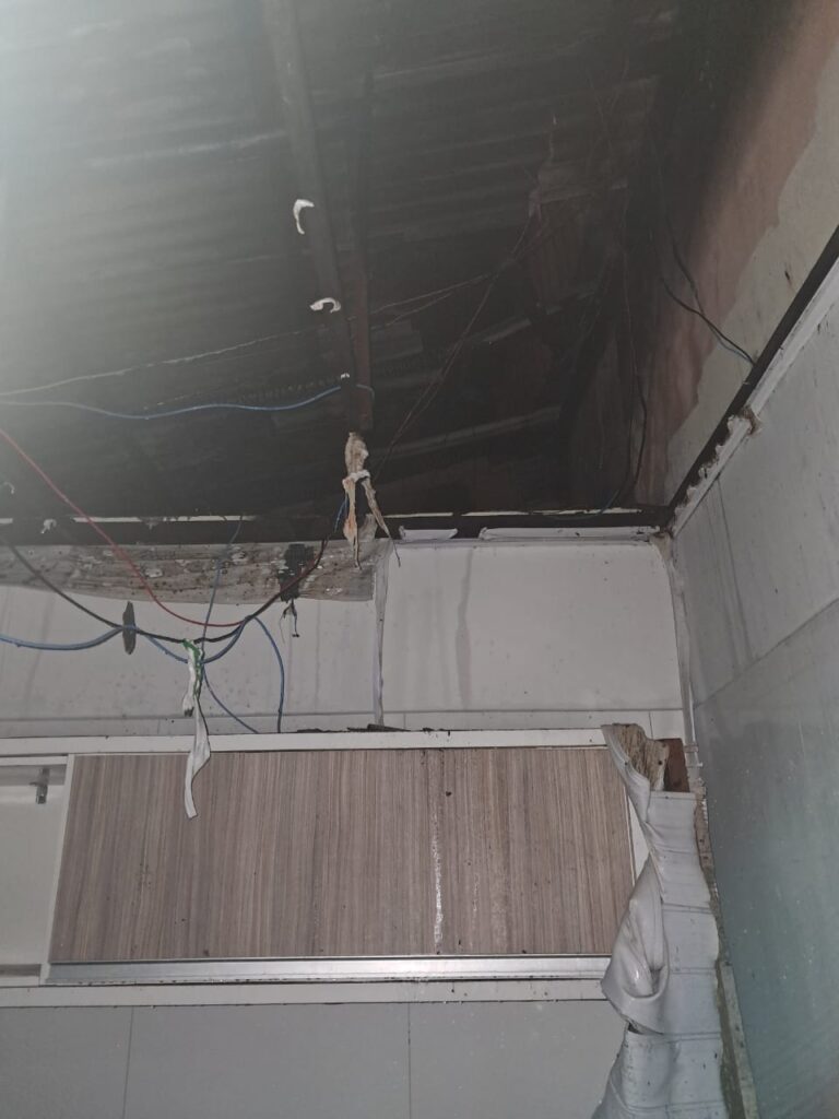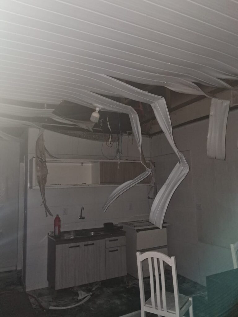 De acordo com os bombeiros, o fogo atingiu o forro do banheiro de uma das kitinetes que compunham o imóvel, que estava desocupado há cerca de um mês e vinha sendo utilizado como depósito. No local, havia materiais como fios de cobre, utensílios de decoração e outros objetos armazenados.