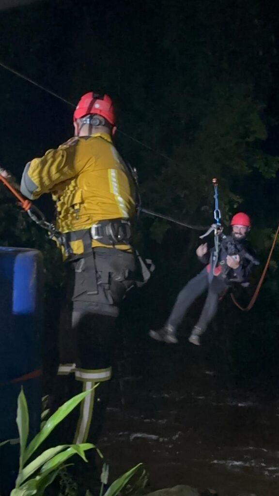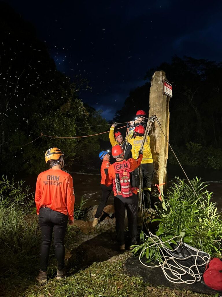 A ocorrência contou com o apoio do Grupo de Resgate em Montanha (GRM), que atuou em conjunto com os bombeiros. As equipes montaram uma operação técnica com uso de equipamentos para salvamento em altura e aquático, além de iluminação para garantir a segurança durante os trabalhos.