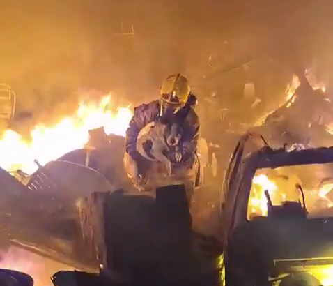 VÍDEO: Bombeiros resgatam cadela de incêndio de grandes proporções